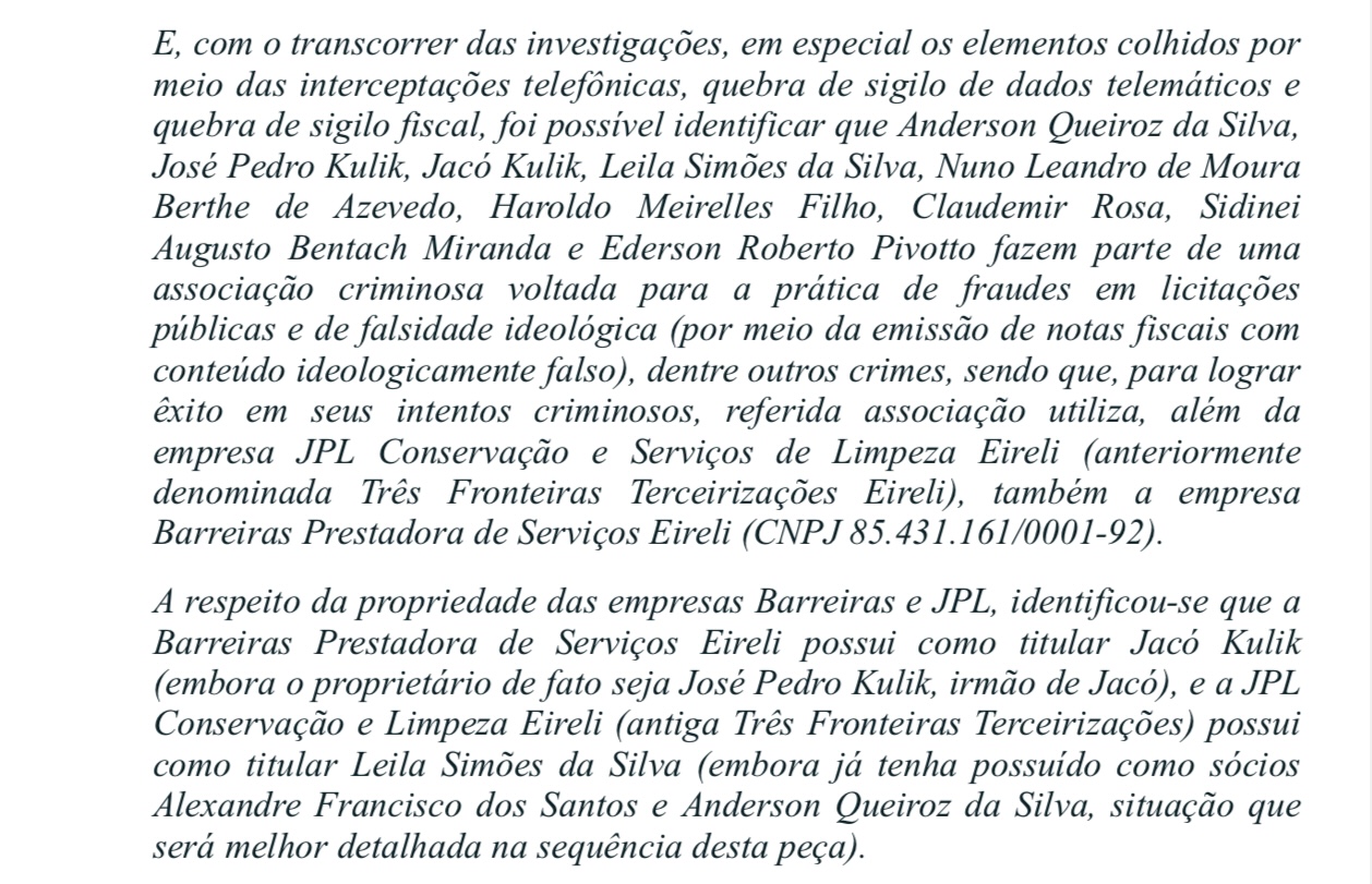 Em 2021, a Barreiras Prestadora de Serviços Ldta foi alvo de uma operação policial deflagrada pelo Gaeco. Na ocasião, 30 mandados de busca e apreensão foram cumpridos pelos investigadores nas cidades catarinenses de Chapecó, Planalto Alegre, Cordilheira Alta e Rio do Sul. No estado do Paraná, as buscas aconteceram nos municípios de Dois Vizinhos, Toledo e Curitiba.