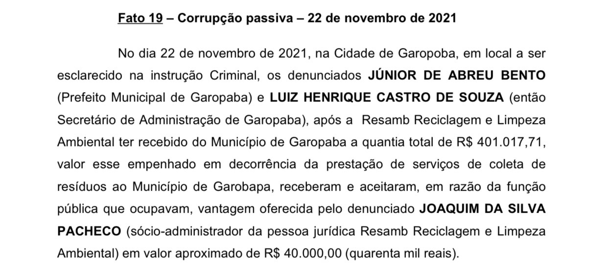 Em decorrência das investigações, o prefeito de Garopaba, Júnior Abreu, chegou a ser preso preventivamente.